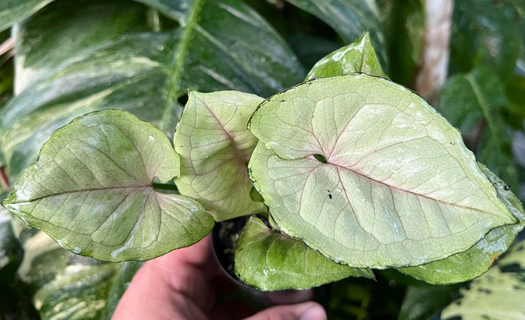 Humidity: Syngoniums thrive in humid conditions, so it's beneficial to increase humidity levels, especially indoors. You can achieve this by misting the leaves regularly, placing the plant on a tray of pebbles filled with water, or using a humidifier.