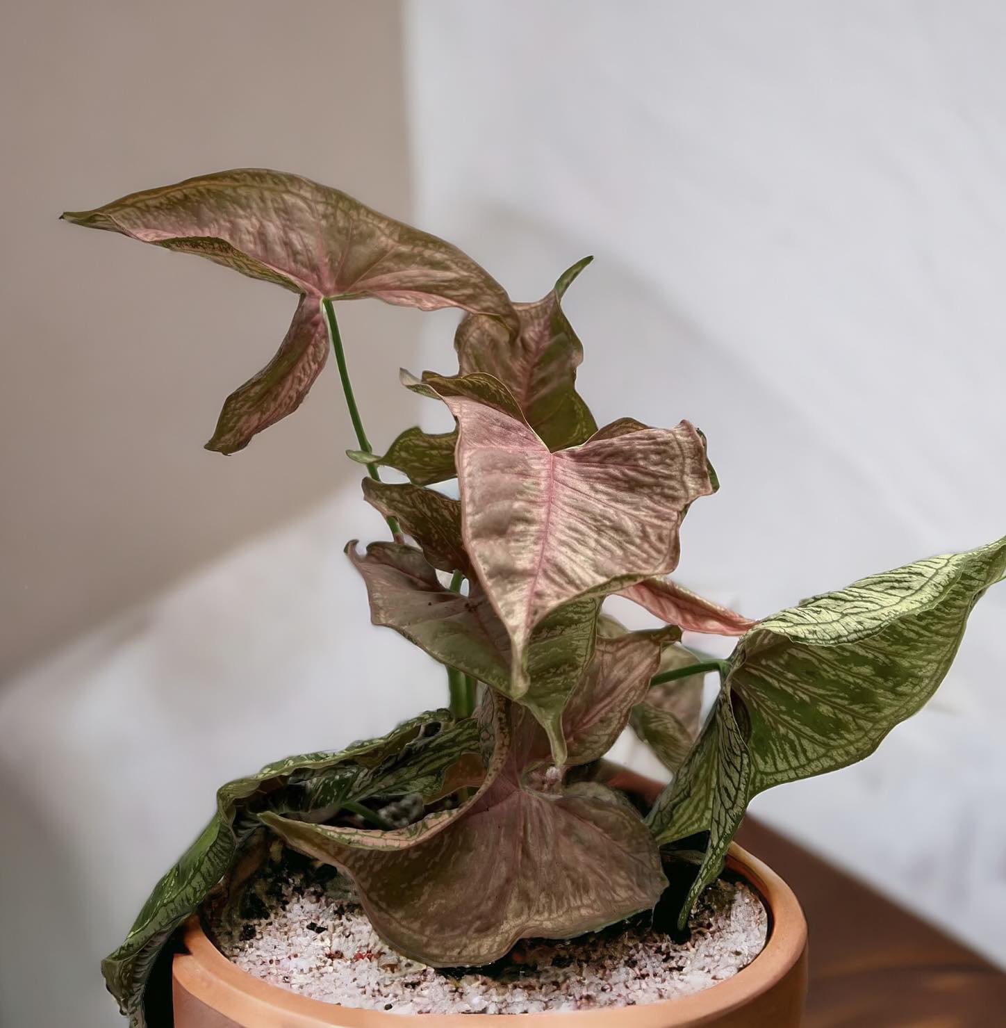 Light: Syngoniums prefer bright, indirect light. Avoid direct sunlight as it can scorch their leaves. They can tolerate lower light conditions but may not grow as vigorously.